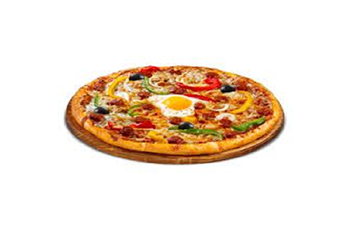 Sauce tomate, mozzarella, merguez, œuf, poivron, olives.